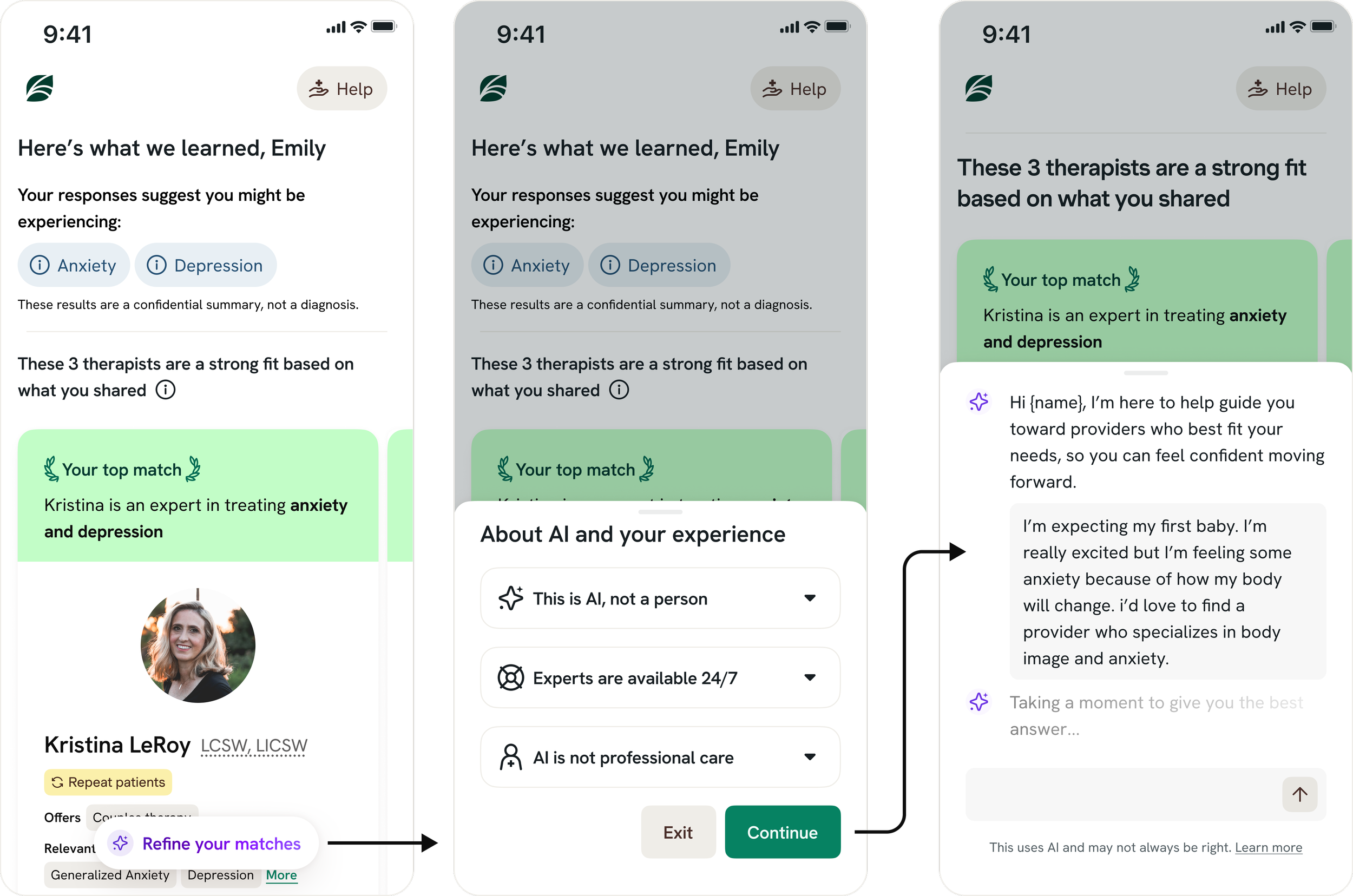 We grounded our direction in recent onboarding and provider-fit research, then developed lightweight conversational prototypes to align design, product, engineering, and leadership on the intended experience.